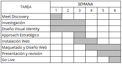 El tiempo estimado de una Web ESTRATÉGICA es de 6 semanas, y en el caso de web INICIAL 4 semanas.